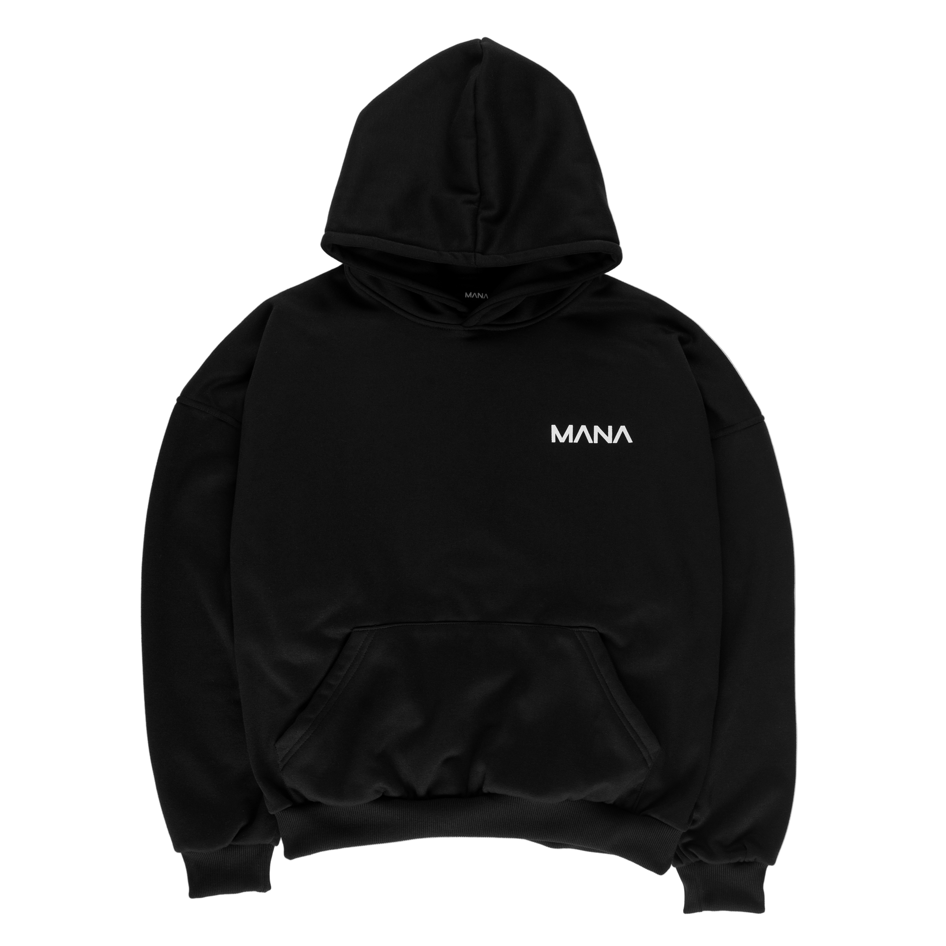 Built from a dense, premium-weight fleece, this hoodie delivers warmth, structure, and long-lasting comfort. The front features a clean white Mana logo. On the back, an X-ray scan of a gamer’s hand reveals the keys etched into bone.